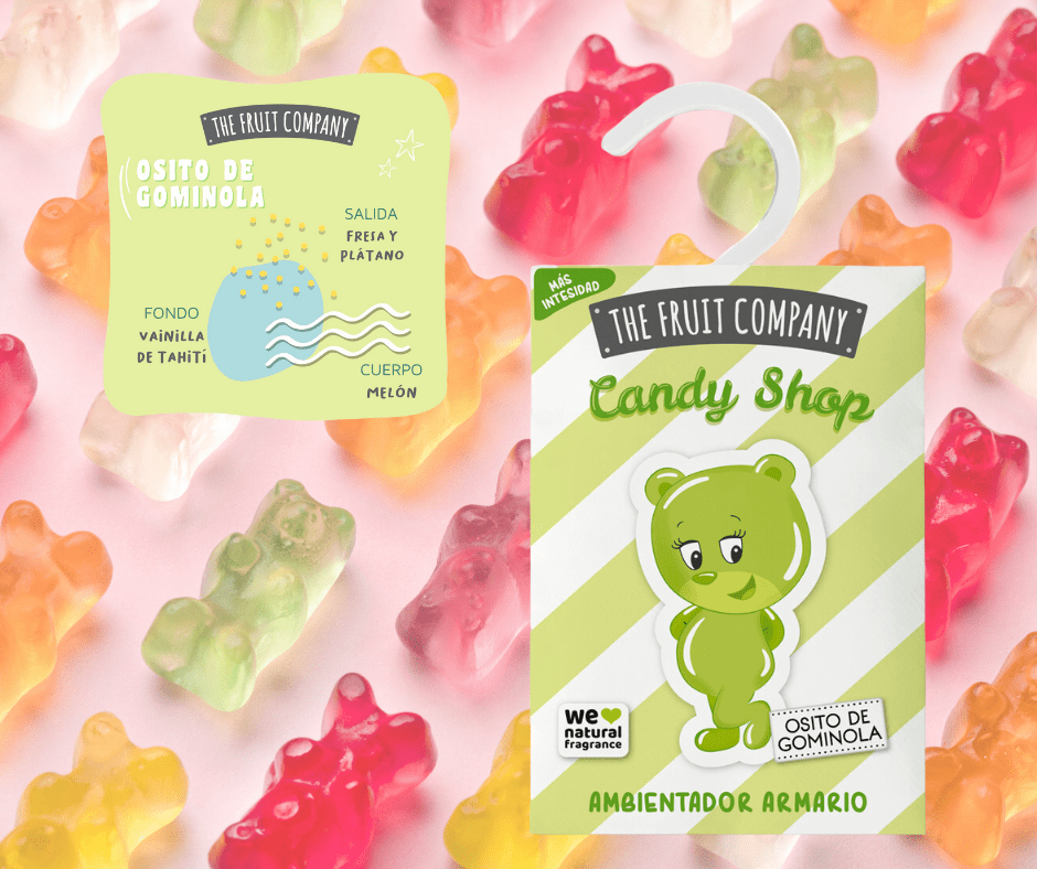Con una duración de más de 45 días, este ambientador para armarios y cajones te garantiza un aroma delicioso y duradero sin alcohol y con extractos naturales. ¡Prepárate para disfrutar de la frescura y diversión en cada abrir de puerta! Mantén tus prendas y espacios favoritos siempre perfumados con el encanto irresistible del osito de gominola. ¡Un toque dulce que alegrará tus días! Un mix frutal a plátano y fresa que acompañado de un corazón de melón con notas florales a jazmín, se mezclan con la exótica vainilla de Tahití para crear una fragancia de una dulzura única.