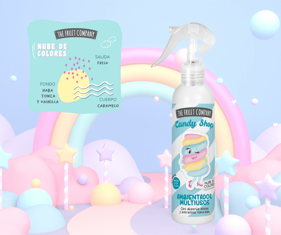 ¡Dale a tu hogar un toque dulce y fresco con el Ambientador Spray Nube de Colores de The Fruit Company! Con su fragancia irresistible, este spray mágico de 200 ml es perfecto para eliminar toooodos los malos olores. ¡Lo mejor de todo es que no mancha los tejidos! Disfruta de un ambiente siempre acogedor y deliciosamente perfumado con este ambientador en spray único. ¡Adiós olores desagradables, hola dulce fragancia! La frescura de la fresa combinada con el dulce caramelo se encuentran con las notas a exótica vainilla, y aromática y especiada Haba Tonca para rematar la dulzura de esta fragancia.