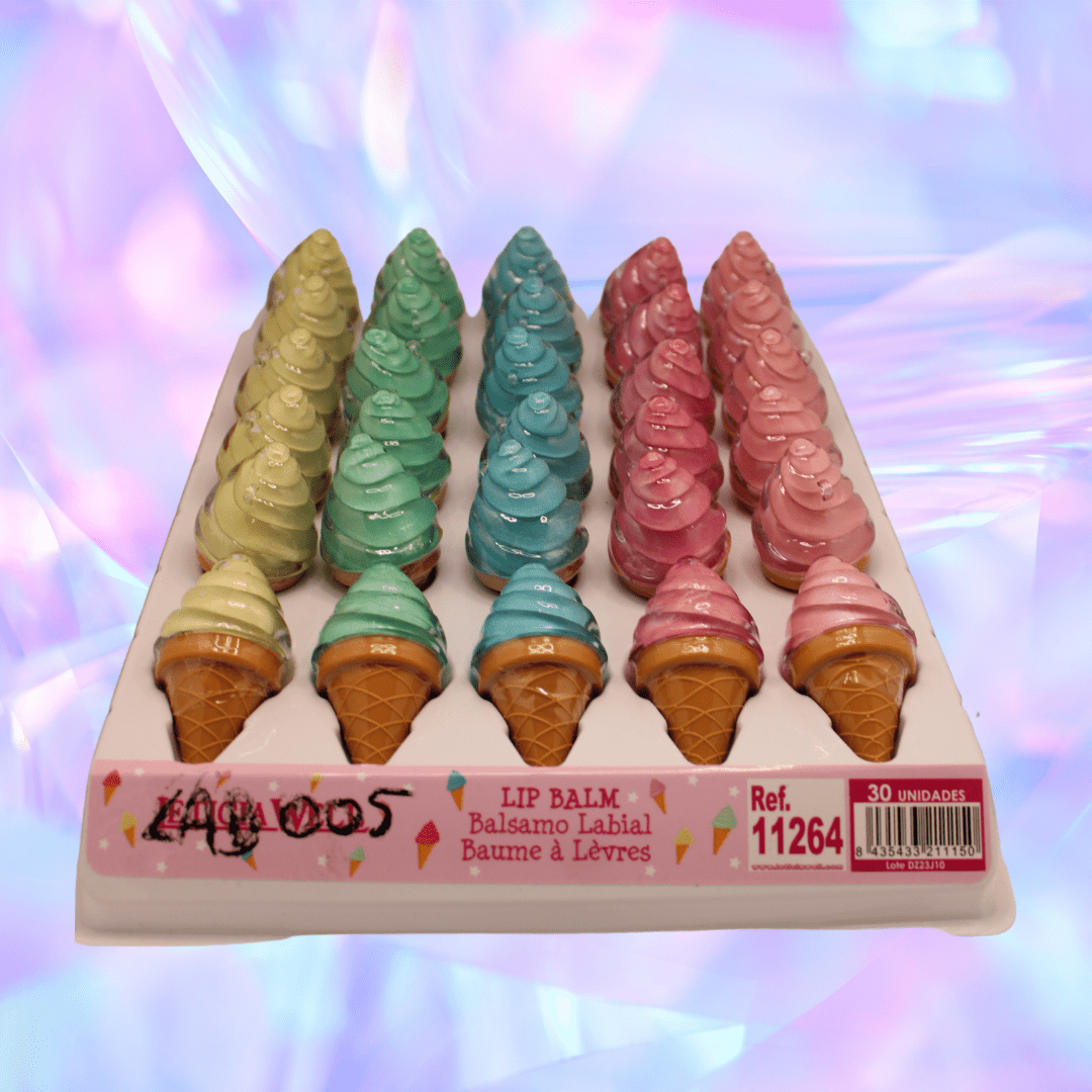 Divertído bálsamo labial hidratante con forma de dulce cucurucho de helado. Elije tu favorito entre los 5 colores pastel.