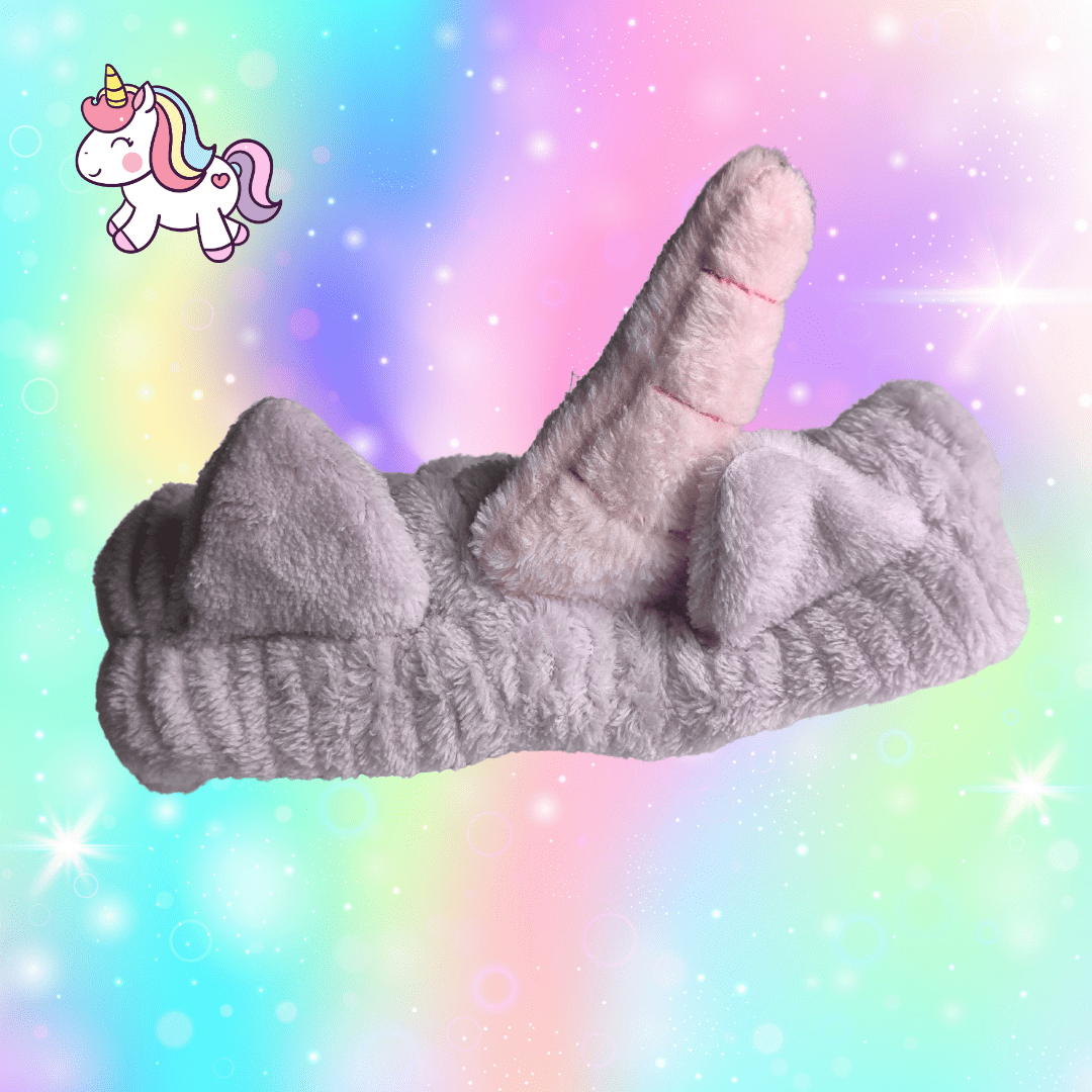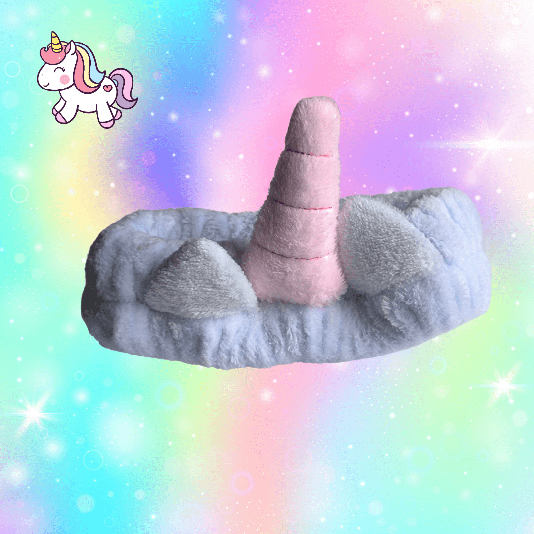 Práctica banda para el pelo suave y esponjosa. Tu mejor aliada en las rutinas de skincare. Disponible en 5 colores con adorables orejas y cuerno de unicornio.