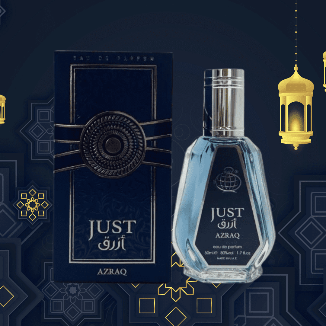 Just de Azraq es una nueva fragancia para hombre. Las notas de salida son lavanda y pimienta negra; las notas de corazón son agua de coco, iris y sal; y las notas de fondo son vainilla e incienso.