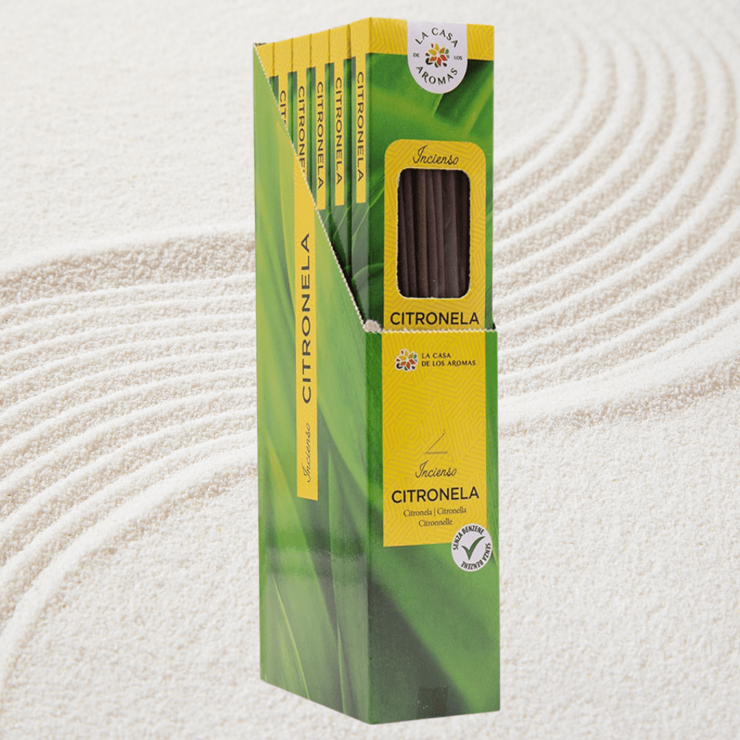 El incienso de citronela antimosquitos para interior y exterior, destaca por producir una agradable sensación de bienestar cuerpo-mente. Reduce los niveles de estrés y ayuda a aumentar la capacidad de concentración.