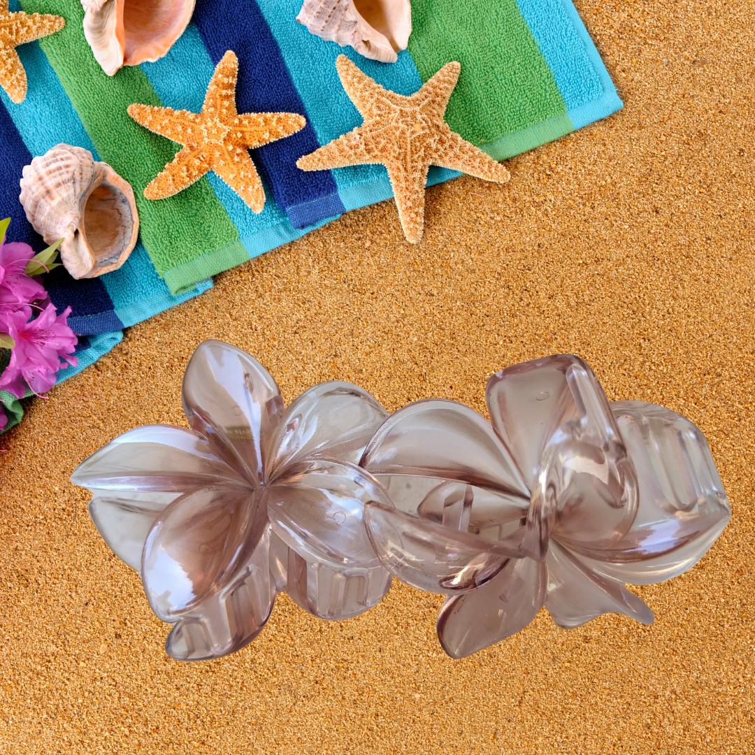 PINZA FLOR HAWAIANA TRANSPARENTE CAFÉ 8 CM