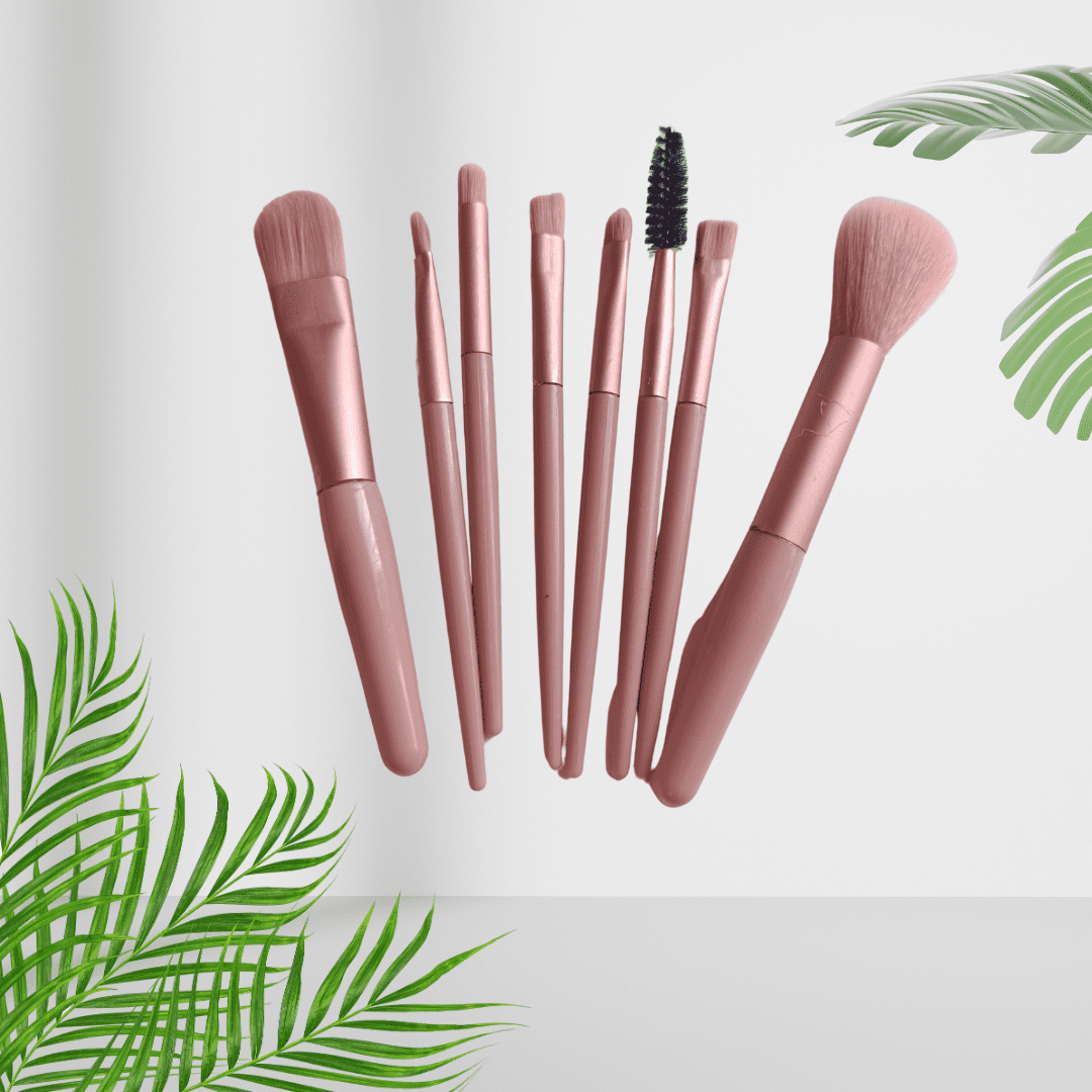Práctico juego de 8 pinceles en cálido tono rosa ideal para almacenar en sitios pequeños con cerdas muy suaves.