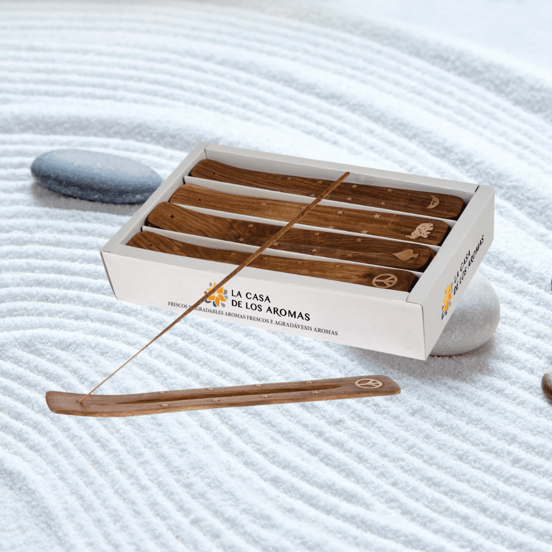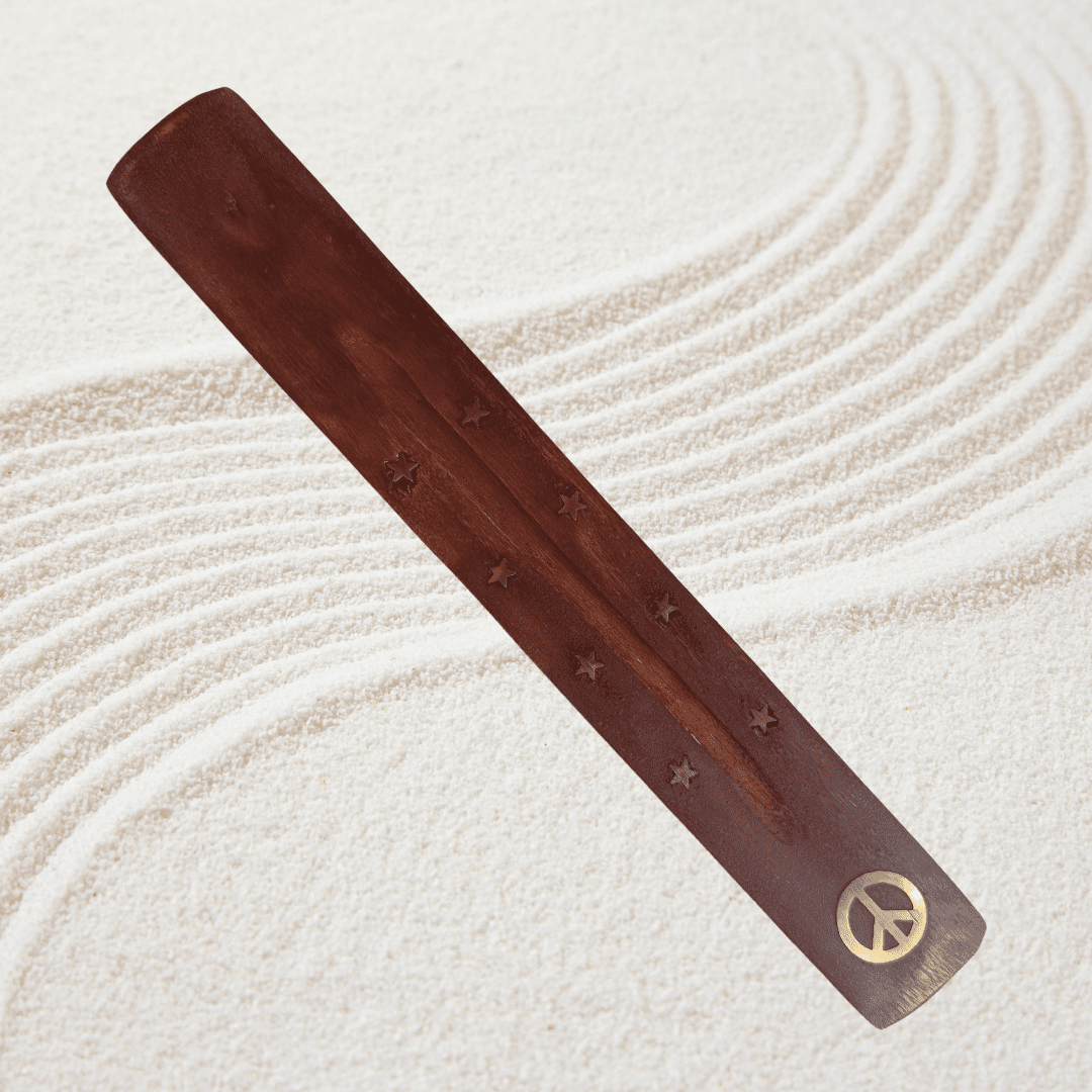 TABLA PORTA INCIENSO DE MADERA CON SÍMBOLOS
